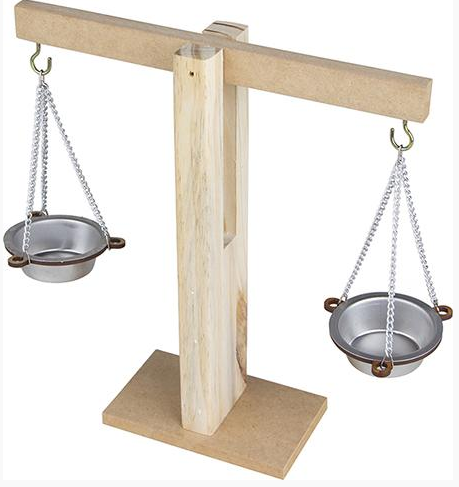 | A balança de madeira é indicada para as aulas de matemática, para a comparação de pesos. |