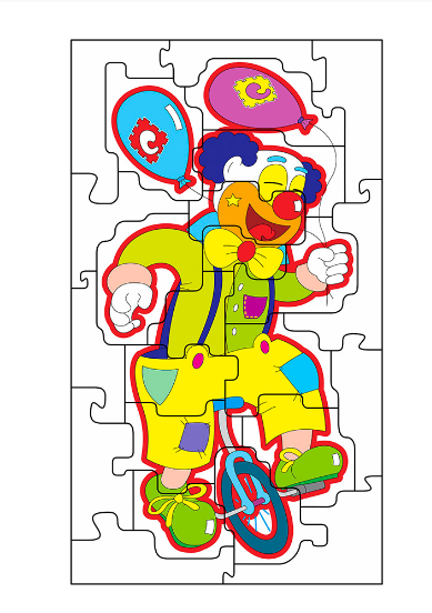 Confeccionado em M.D.F. composto por 24 peças, pintadas e serigrafadas em policromia ultravioleta atóxica. Ilustração: Palhaço segurando balões e andando de uniciclo. Medidas do quebra-cabeça montado: 60 x 105 cm. Embalagem caixa papel cartonado ilustrado medindo 35 x 25 x 6 cm. Lacrada com película de P.V.C. encolhível.