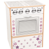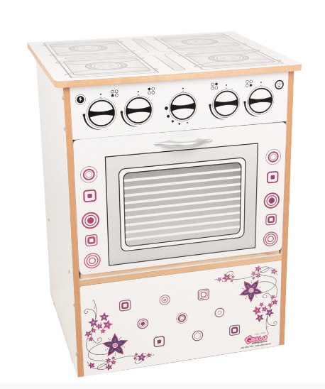 Confeccionado em M.D.F. e madeira. Brinquedo imitando um fogão de 4 bocas, porta do forno com delimitador interno e puxador para abrir. Fogão todo pintado e serigrafada com tinta ultravioleta atóxica. Medidas do fogão: 48 x 61,5 x 71 cm. Embalagem: Caixa de papelão.