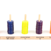 Confeccionado em M.D.F. plástico  translúcido e madeira,  base com serigrafia  atóxica,  medindo  30 x 7 x 12 cm,  05 varetas fixas na base e 50 argolinhas de  P.V.C. rígido  translúcido coloridas. Embalagem: Película de P.V.C. encolhível.