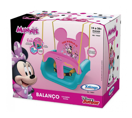 As crianças podem se divertir no embalo do balanço Minnie Xalingo Brinquedos. Inspirado no personagem da Disney, diverte e desenvolve o equilíbrio e a coordenação motora. O balanço Minnie 3 em 1 injetado acompanha o crescimento da criança, porque pode ser usado com ou sem encosto e barra de proteção. O encosto é regulável, acompanhando cordas em plástico e 2 ganchos para fixação. Indicado para crianças de 19 a 36 meses.