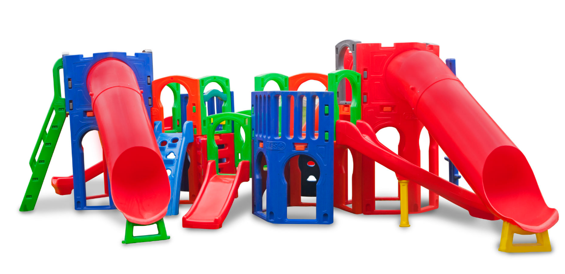 - Playground totalmente vazado na parte inferior, com entradas/saídas formando um divertido labirinto