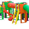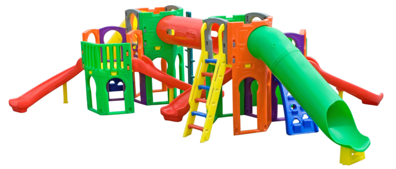 - 4 escorregadores curvos com um poste de sustentação cada um, conectados a cada módulo menor