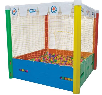 • Piscina de bolinhas produzida em plástico rotomoldado em formato quadrado (2m x 2m).