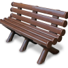 Banco com as tiras do assento e do encosto em formato de toras de madeira, com rebaixo no meio do assento e do encosto para maior conforto. As extremidades mantém o formato circular de uma tora de madeira para melhor estética.
