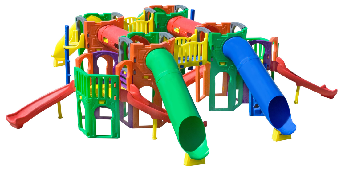 - Playground totalmente vazado na parte inferior, com entradas/saídas formando um divertido labirinto
