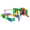 • Playground compacto com um conjunto maior formado por 2 módulos em formato hexagonal interligados um ao outro sem utilização de tubos ou pontes e um conjunto menor em formato hexagonal
