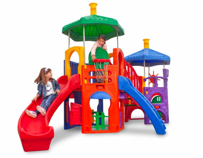 - A diversão não vai ter fim com este brinquedo! Escorregadores, escalada, escadinha, porta de castelo, timão para brincar de capitão, tabelinha de basquete e muito mais!