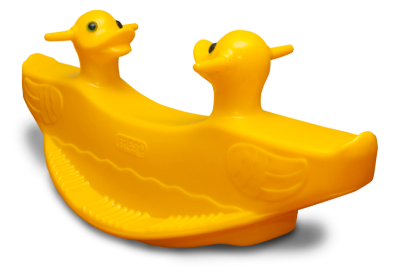 - gangorra para 2 ou 3 crianças em forma de patinho com 4 pegadores laterais e olhos de acrílico