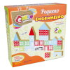Confeccionado em M.D.F. 50 peças ilustrando blocos de construção. Pintadas e serigrafadas com tinta atóxica em um das faces. Embalagem: Caixa de papel microondulado ilustrado medindo 24 x 24 x 8 cm. Lacrada com película de P.V.C. encolhível.