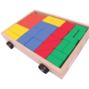 As crianças vão poder dar asas à imaginação com o Conjunto Blocos Coloridos. As peças de madeira em formas geométricas permitem as mais variadas combinações para criar objetos diferentes. A embalagem também é um brinquedo. Após o uso, outro desafio é guardar as peças, escolhendo o lugar de cada uma para que todas caibam no carrinho.