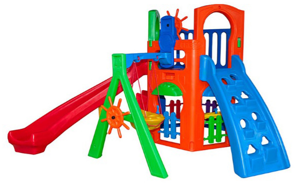 - estrutura em plástico acoplada a uma das laterais, com um balanço em forma de jatinho e peça em forma de timão
