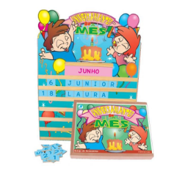 A sala de aula se completa com este quadro dos aniversariantes do mês. Todas as crianças vão acompanhar o calendário para descobrir quem faz aniversário e em que dia. Este material incentiva a organização, a observação e a leitura/escrita.