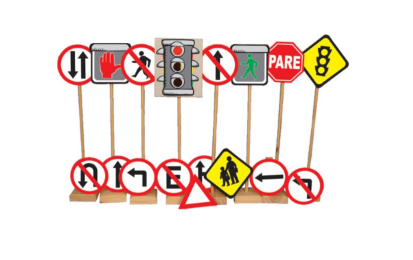 Material: MDF/Madeira – 17 sinais com altura de 790mm