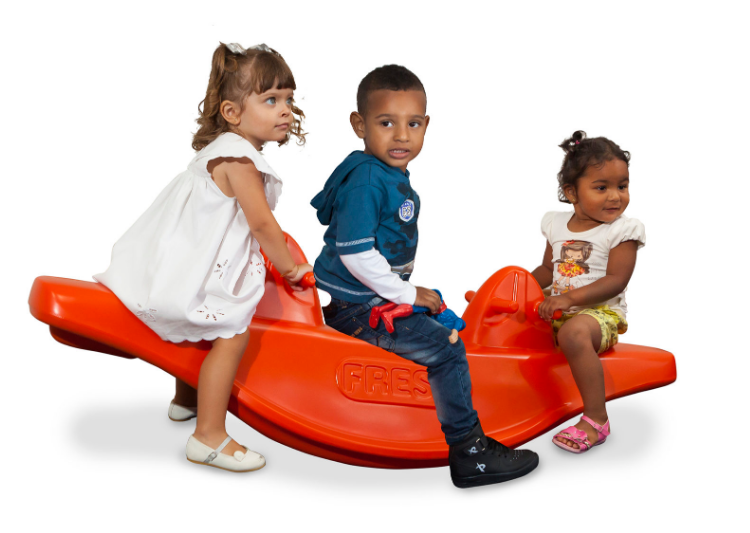 - Gangorra para 3 crianças com manoplas duplas de tal forma que todas as crianças tenham onde se segurar.