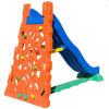 O Escorregador Mount Play Mundo Azul Brinquedos possui parede para escalada com pedras em formato anatômico para apoio e segurança na subida.