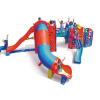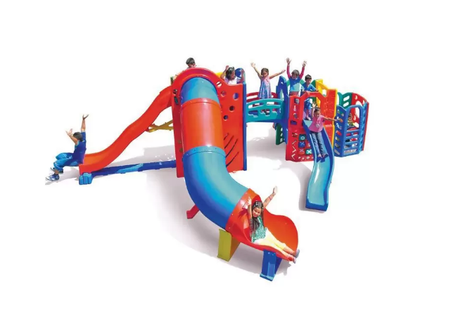 • Escorregador grande com prancha ondulada e base de segurança em formato de T.