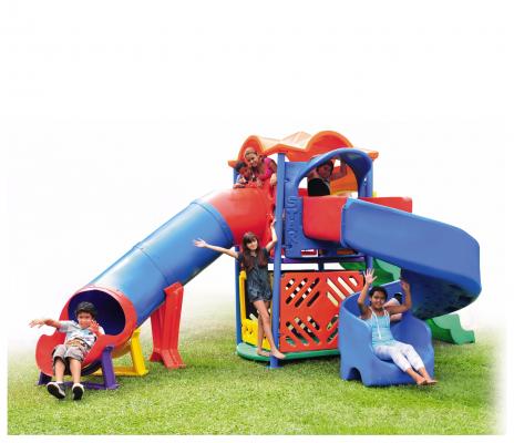 • Escorregador formato de túnel em curva com três bases de segurança.