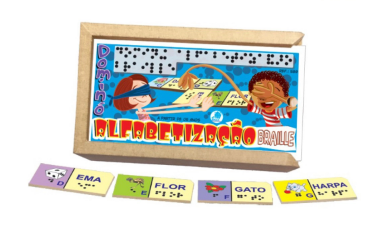 As crianças no processo inicial de aquisição da leitura e da escrita Braille podem aprender com este jogo, testando suas hipóteses, através da associação das letras iniciais dos nomes de objetos conhecidos. Joga-se como um dominó convencional.
