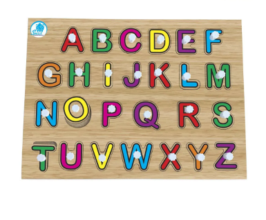 Nesta placa você vai encontrar o Alfabeto de A a Z que são encaixados de acordo com o seu formato. Os pinos permitem o manuseio pelas crianças menores.