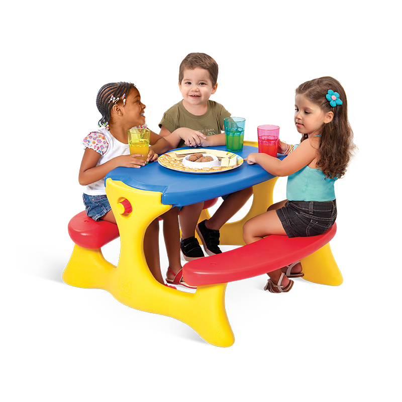 Versátil, para refeições e atividades da criançada.