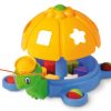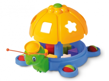 A abelha vem com seis peças didáticas de encaixar que auxiliam a criança a distinguir formas e cores e estimula a coordenação motora. O casco levanta para pegar os bloquinhos de volta e guardar as pecinhas!