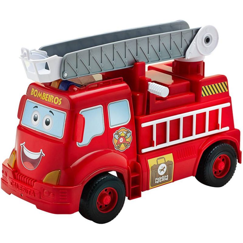 Bombeiros em ação é o caminhão de bombeiros muito divertido que irá entreter seu pequeno herói por horas, ele possui escada com regulagem de altura e giro de 360°, vem com um super lançador de água de verdade e têm um reservatório para a água!