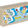 Confeccionado em M.D.F. 28 peças de 7 x 3,5 cm, pintada e serigrafada com tinta ultravioleta atóxica em uma das faces. Embalagem: Caixa de madeira com tampa serigrafada medindo 17 x 9,5 x 4 cm. Lacrada com película de P.V.C. encolhível.