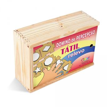 Confeccionado em M.D.F. 28 peças de 9,5 x 5,5 cm. Peças que se encaixam entre si, com figuras geométricas em alto relevo que se associam a outras peças. Embalagem: Caixa de madeira com tampa serigrafada medindo 22 x 15 x 8 cm. Lacrada com película de P.V.C. encolhível.