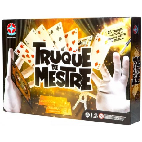 Contém na embalagem: 1 dedeira, 1 corda, 4 cubos de espuma, 3 copinhos, 2 notas Estrela, 6 cartas, 1 baralho completo com 54 cartas, 1 varinha mágica e 1 manual de instruções.