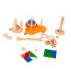Kit confeccionado em E.V.A. Colorido, madeira e M.D.F. composto por 6 jogos: Torre de Hanói, Encrenca com 1 torre, Encrenca com 3 torres , Segredo da chave, Tangram e Pirâmide. Embalagem: Saco de T. N.T.