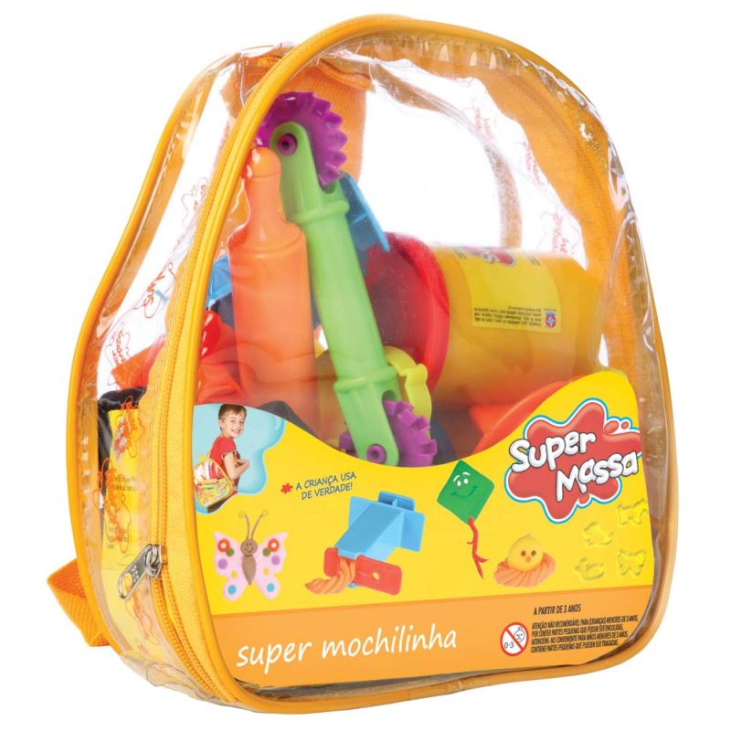 Com a Super Massa Super Mochilinha ficou prático levar a brincadeira para qualquer lugar! Ela vem com moldes de bichinhos, figuras geométricas e ferramentas super divertidas e acompanha 1 potes de 140g.