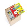 Confeccionado em M.D.F. 20 pares totalizando 40 peças de 5 x 5 cm cada, serigrafadas em policromia ultravioleta atóxica. Embalagem: Caixa de madeira com tampa serigrafada medindo 12,5 x 12,5 x 5 cm cada. Lacrada com película de P.V.C. encolhível.