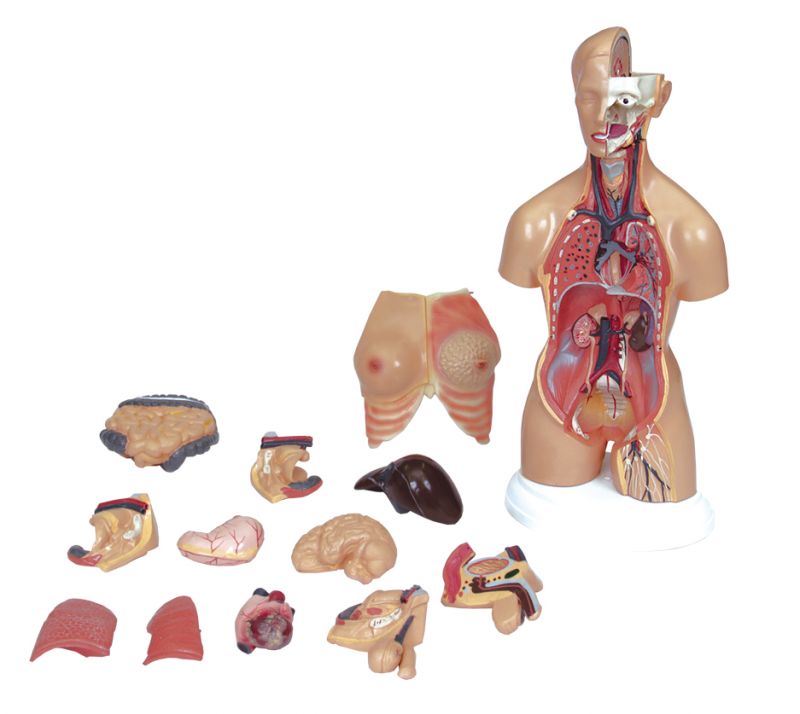 Conhecer o nosso corpo é essencial para o entendimento de diversas áreas das ciências, como a Biologia e a Química. Esse modelo auxilia a aprendizagem de conteúdos como os sistemas digestório, respiratório, urinário, reprodutor e nervoso. Confeccionado em material plástico de alta resistência e pigmentado na cor natural da pele, medindo 500mm, contém 14 partes desmontáveis do corpo humano. Acondicionado em caixa de papelão.