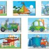 O Quebra-cabeça de Meios de Transporte auxilia no desenvolvimento de raciocínio lógico, coordenação motora e socialização, além de contribuir para o enriquecimento do vocabulário. O conjunto é confeccionado em MDF e impresso em policromia. Contém 10 quebra-cabeças, cada um medindo 280x180x2,8mm, com diferentes recortes para 6, 9 e 12 peças. Acondicionado em caixa de papelão.