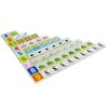 Confeccionado em M.D.F. 54 peças de 4,5 x 4,5 cm. Peças pintadas e serigrafadas em policromia ultravioleta atóxica em uma das faces, com figuras de animais e peças com números relacionado a quantidade das figuras (números de 1 ao 9. Ex: 1 Sapo – n° 1; 2 Baleias – n° 2; etc). Embalagem: Caixa de madeira com tampa serigrafada medindo 18 x 18 x 4 cm. Lacrada com película de P.V.C. encolhível.