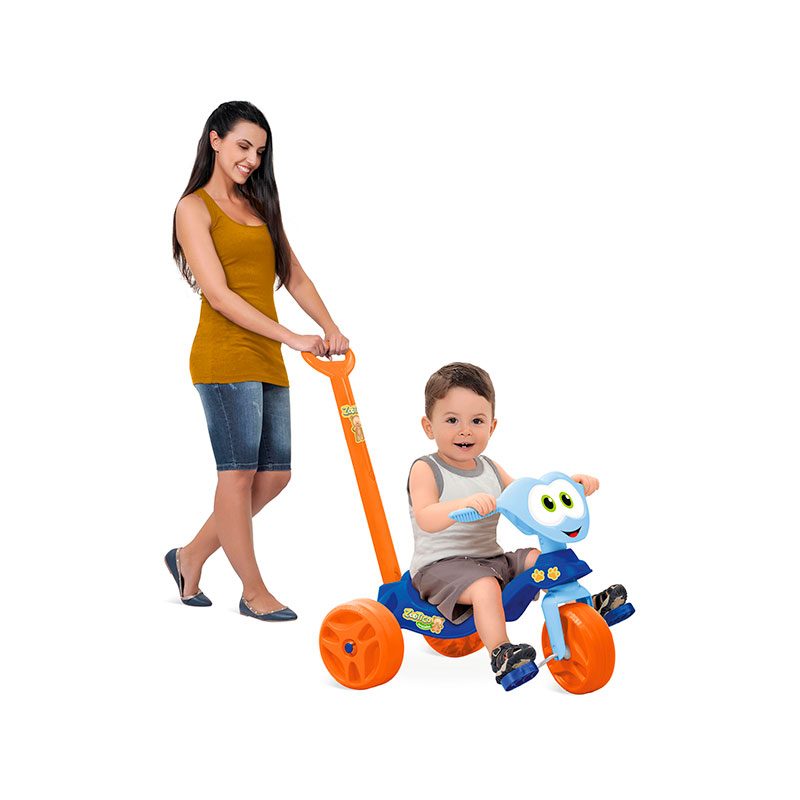Função Passeio: O adulto utiliza a haste (não direcionável) para movimentar o triciclo.