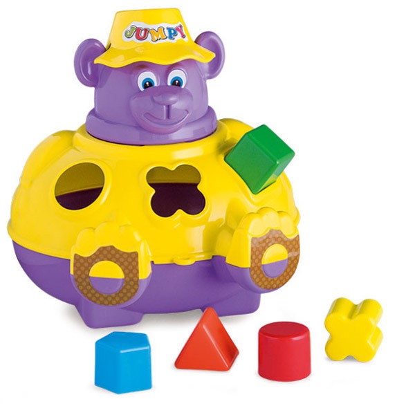 Este simpático ursinho vem com formas didáticas de encaixar que auxiliam a criança a distinguir formas e cores e estimulam a coordenação motora. A cabeça levanta para pegar os bloquinhos de volta e guardar as pecinhas! O Urso jumpy ainda vem com rodinhas na base para deslizar.