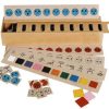 Jogo confeccionado em M.D.F. composto por 01 estojo, 03 réguas e 50 fichas serigrafadas com tinta ultravioleta atóxica. Embalagem: Caixa estojo de M.D.F. medindo 41 x 11 x 7 cm. Lacrada com película de P.V.C encolhível.